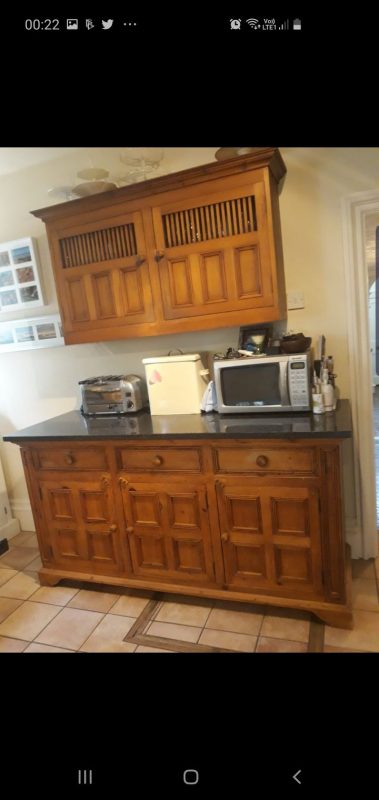 Here is a hand painted kitchen in Warrington changed from a waxed pine effect to something quite different.